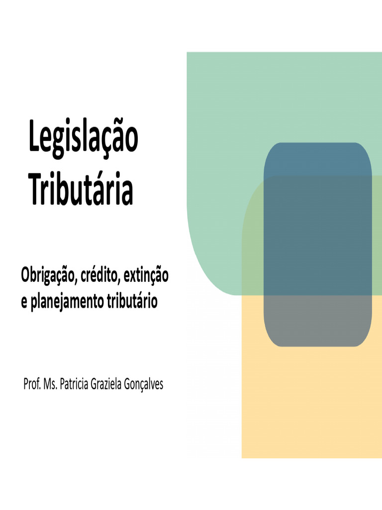 • Título da Teleaula: Obrigação, crédito, extinção e planejamento tributário