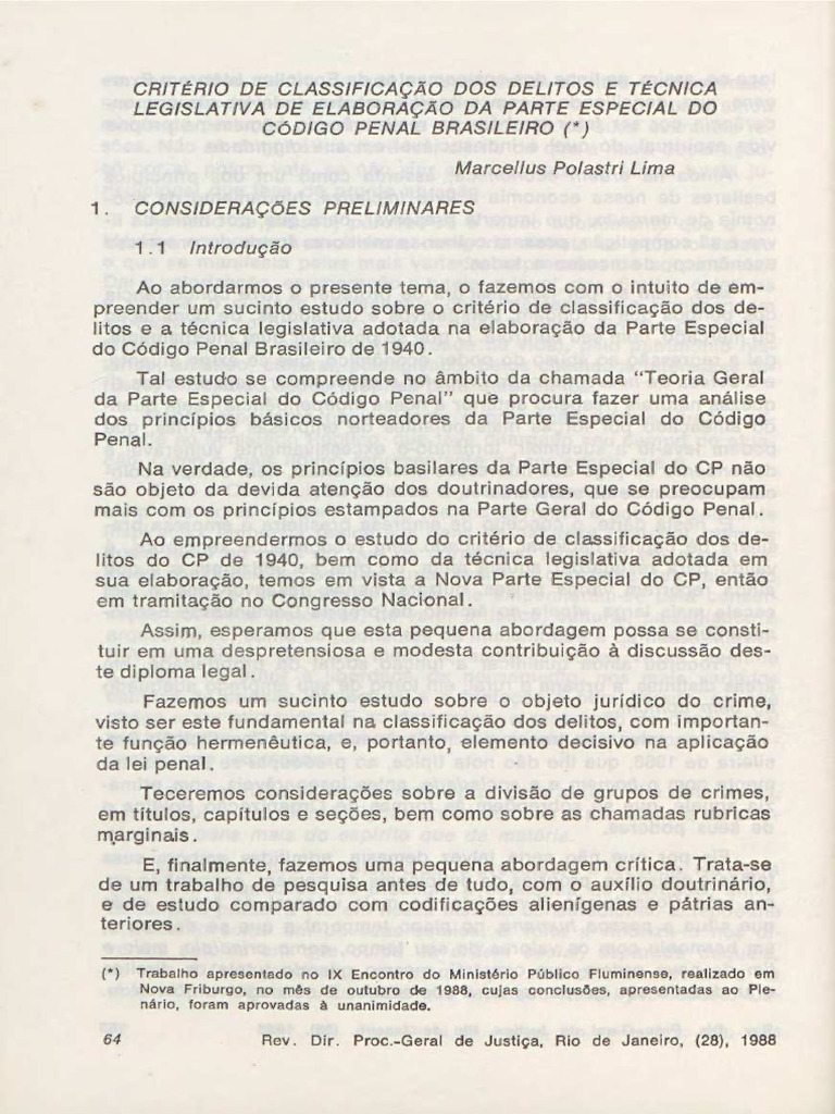 64 Rev . Dir . Proc.-Geral de Justiça, Rio de Janeiro, (28), 1988