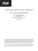 Para o caso de RAID implementado por software, essas informaes devem ser fornecidas pelo prprio SO, isto , os dados a serem escritos so particionados pelo SO, e as diferentes fatias de dados so enviadas aos discos um por um. Vdeo No modo texto o vdeo organizado em uma matriz de caracteres, as posies da memria de vdeo correspondem a caracteres e a seus atributos. No modo grfico, a matriz organizada em pixels; cada pixel tem associada uma srie de posies de memria correspondentes as suas cores. A memria de vdeo da placa determina sua resoluo (nmero de linhas e colunas da matriz) e o nmero de cores de cada pixel. A capacidade de resoluo e nmero de cores determina o tipo da controladora (EGA, VGA, SVGA, etc). Teclado O princpio de operao do teclado bastante simples: gerar um smbolo para cada tecla pressionada. Quando uma tecla pressionada, o teclado identifica a linha e a coluna associadas a essa tecla e gera um cdigo que denominado de scan code (cdigo de varredura). Para cada tecla, existem, na realidade, dois cdigos, um para identificar o pressionador da tecla e outro para sinalizar que a tecla foi liberada. Algumas teclas, ou seqncias de teclas (CTRL-ALT, etc) geram mais de um cdigo. O pressionar de uma tecla gera ainda uma interrupo de hardware e, por conseuencia, a execuo de um tratador de interrupes especfico para o teclado. O tratador de interrupo, nesse caso, l registros internos especficos da interface do teclado para recuperar o scan code da tecla pressionada. Com base no scan code, o tratador de interrupes consulta uma tabela interna, substituindo o scan code pelo cdigo ASCII correspondente tecla pressionada. O cdigo ASCII da tecla , em seguida, armazenado em uma regio especial da memria (buffer de teclado) de onde recuperado por chamadas de SO. Ns podemos ver essa interao como uma relao do tipo produtor-consumidor, na qual o tratador de interrupes de teclado produz cdigos ASCII e armazena-os em uma fila. Posteriormente, outro processo o Sistema operacional consome o contedo dessa fila, realizando assim a leitura dos caracteres pressionados. As primitivas para consumo de caracteres so disponibilizadas ao usurio final atravs de rotinas de bibliotecas, como, por exemplo, getc() na linguagem C. Sob um certo ponto de vista, no se pode dissociar a entrada e sada de dados, j que ns usurios queremos visualizar os caracteres que digitamos na tela de nosso computador. Esse procedimento de ler dados do teclado e escreve-los na tela denomina-se ecoamento.