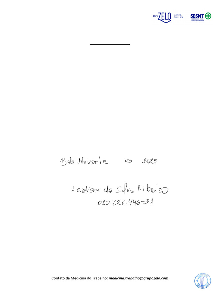 Contato da Medicina do Trabalho: medicina.trabalho@grupozelo.com