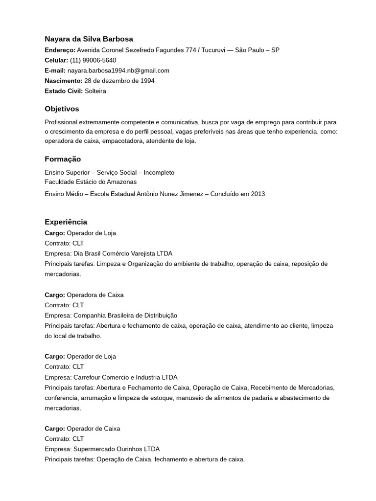 Principais tarefas: Abertura e fechamento de caixa, operação de caixa, atendimento ao cliente, limpeza