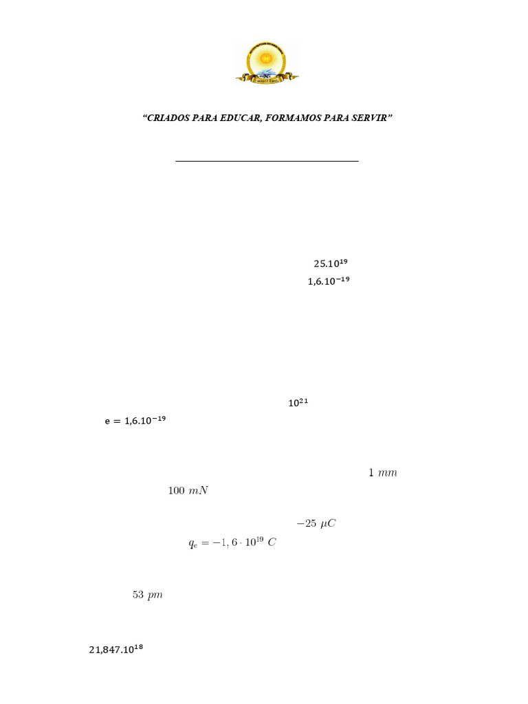 25. Determine a força e a energia potencial eléctrica entre duas cargas eléctricas e puntiformes iguais