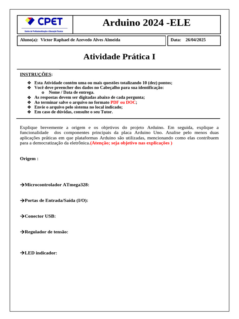 Esta Atividade contém uma ou mais questões totalizando 10 (dez) pontos;