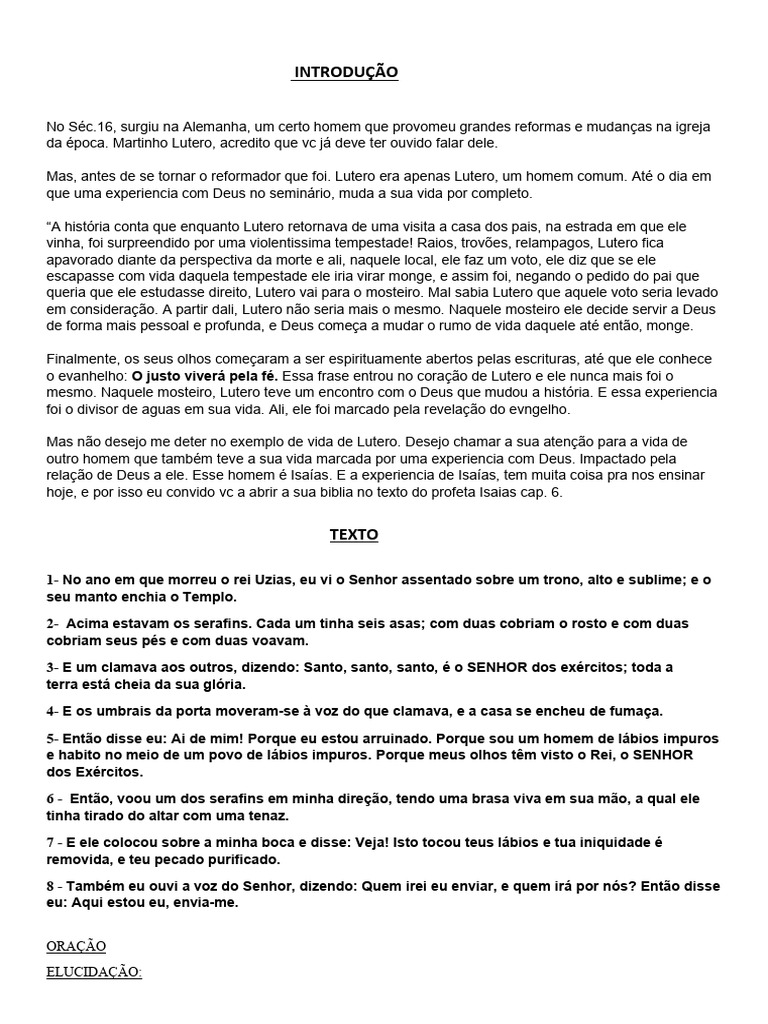 hoje, e por isso eu convido vc a abrir a sua biblia no texto do profeta Isaias cap. 6.