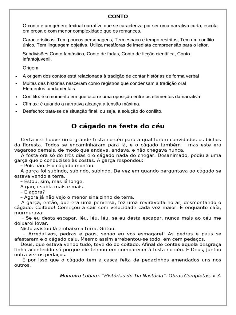O conto é um gênero textual narrativo que se caracteriza por ser uma narrativa curta, escrita