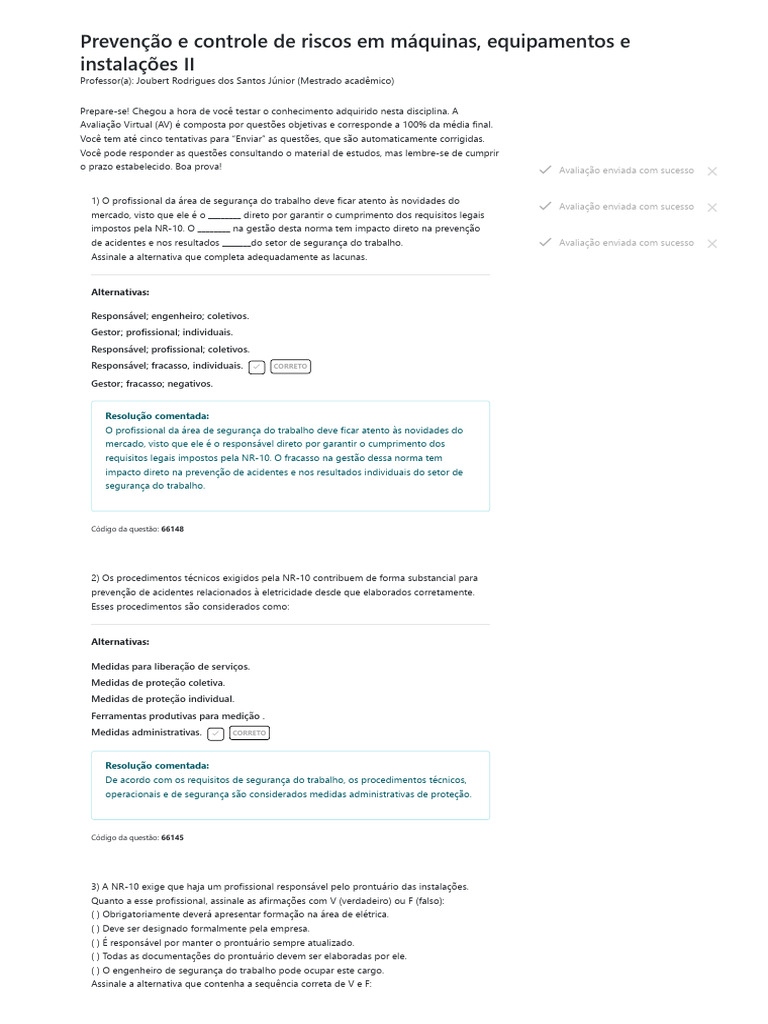 Primeira – O gestor do prontuário das instalações não necessariamente precisa ser check Avaliação enviada com sucesso