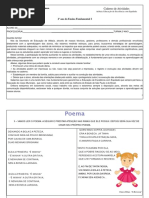11/06: AVALIAÇÃO DE LÍNGUA PORTUGUESA ( LEITURA)