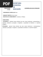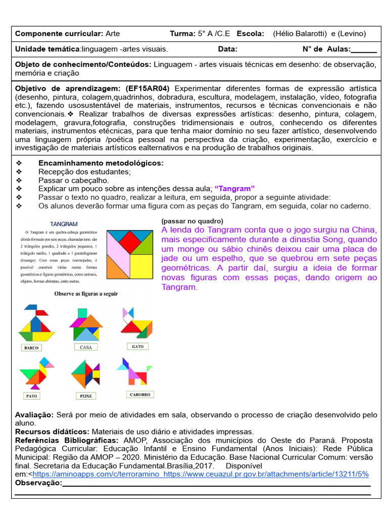 Unidade temática:linguagem -artes visuais. Data: N° de Aulas:______