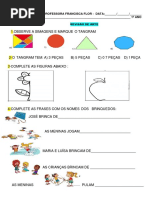 ❖ Os alunos deverão formar uma figura com as peças do Tangram, em seguida, colar no caderno.