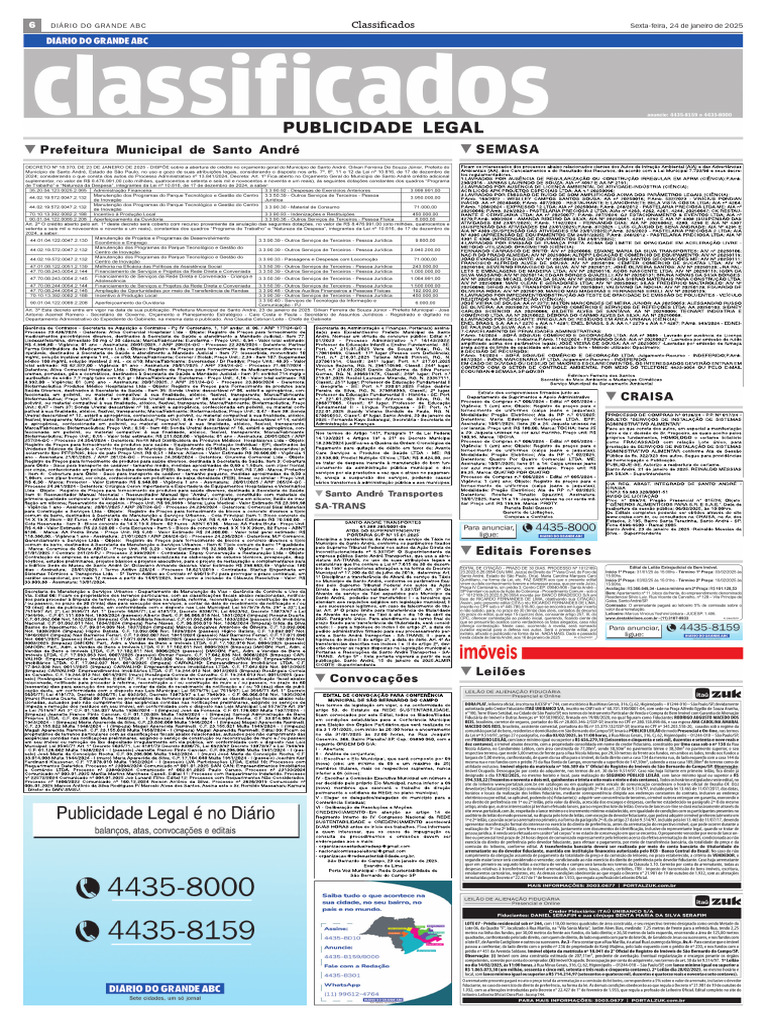 O documento é uma edição do Diário do Grande ABC datada de 24 de janeiro de 2025. Inclui informações classificadas e é assinado digitalmente. A assinatura digital foi registrada em 23 de janeiro de 2025.