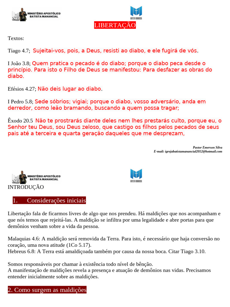 Libertação fala de ficarmos livres de algo que nos prendeu. Há maldições que nos acompanham e