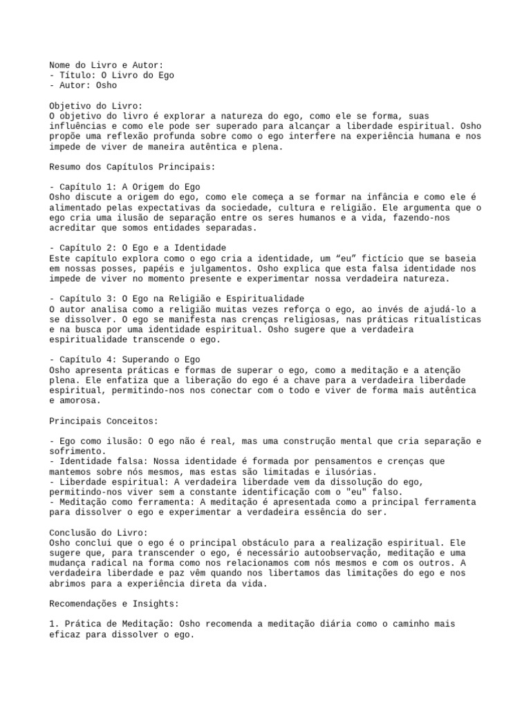 Osho conclui que o ego é o principal obstáculo para a realização espiritual. Ele