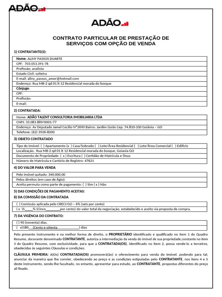 CONTRATADA(OS):Isaias da silva lima CRECI N.: 18256
