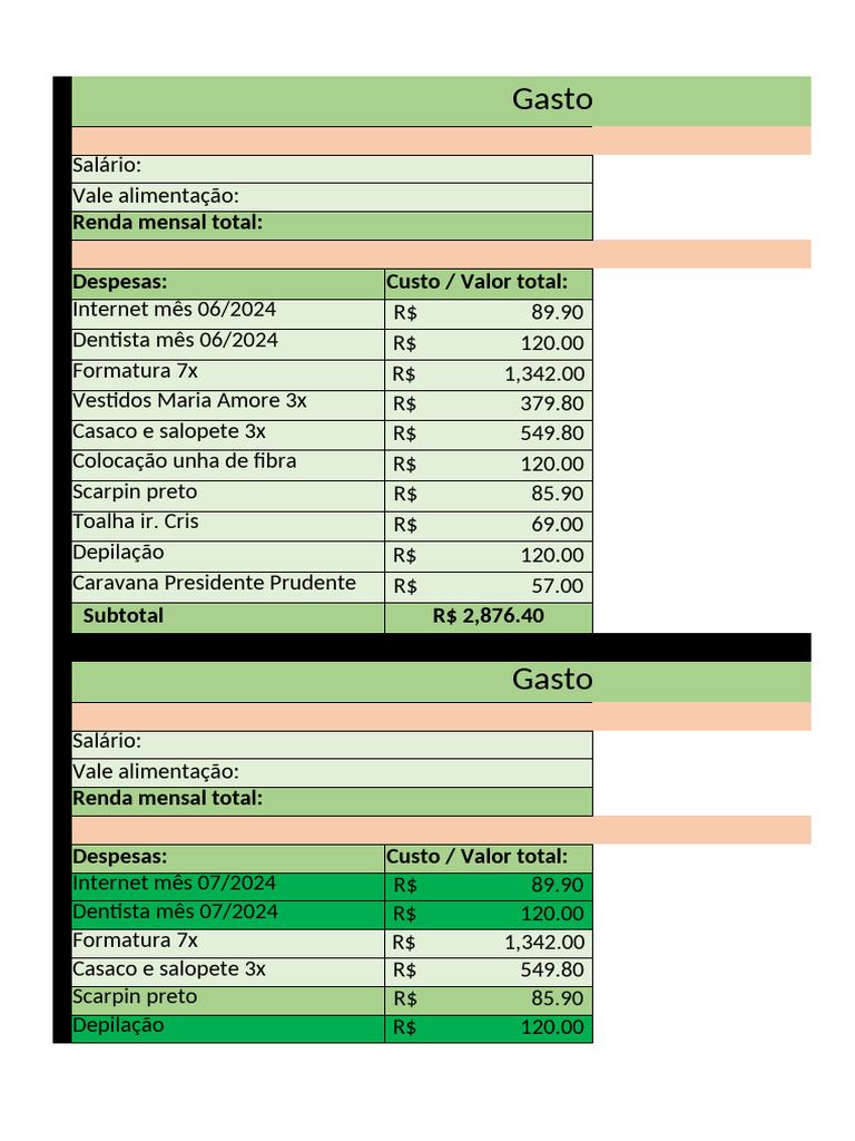 Gastos pessoais mês 06/
