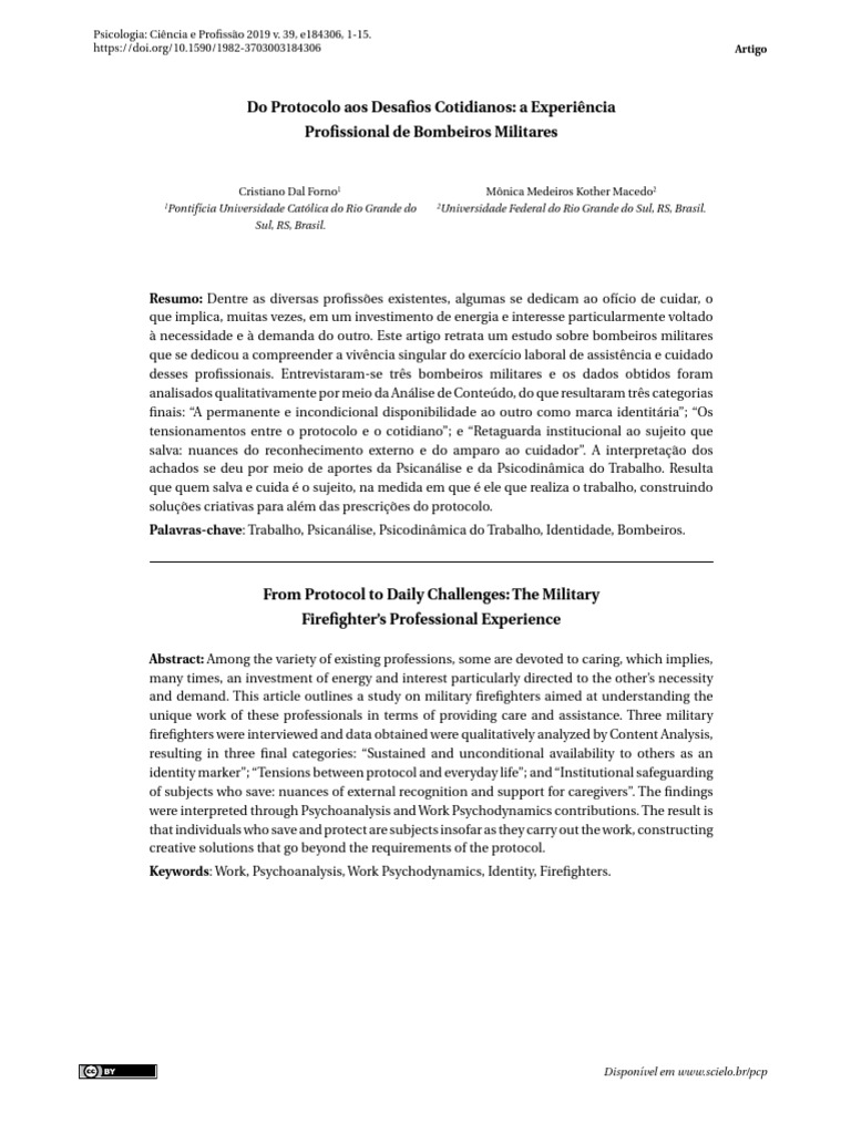 Dal Forno, C. e Macedo, M. K. (2019). Experiência Profissional de Bombeiros Militares.