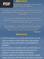 ▪ A reologia (do grego rheo = fluir) é o estudo das propriedades mecânicas de materiais sólidos, fluidos