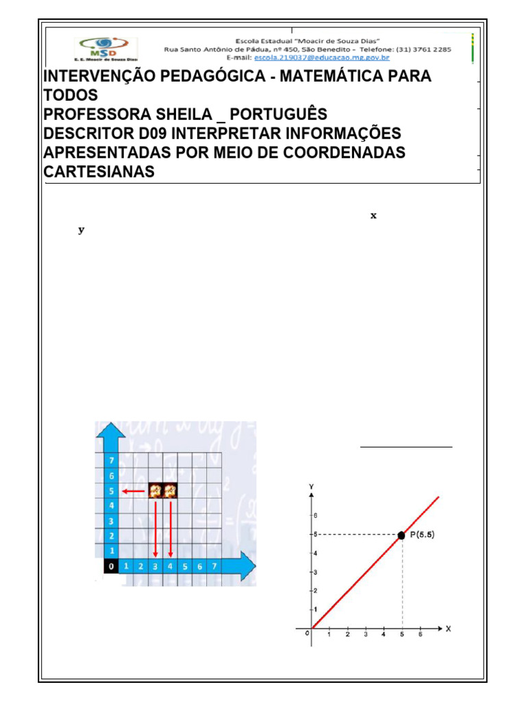 Tema/ Conhecimento: Geometria/ Plano cartesiano: coordenadas cartesianas (1º quadrante)