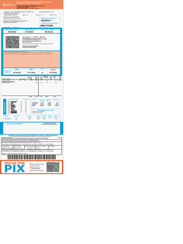 Esta NOTA FISCAL/CONTA DE ENERGIA fica disponível para pagamento a partir de 07/11/2023