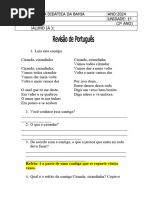 Avaliação Parcial de Português