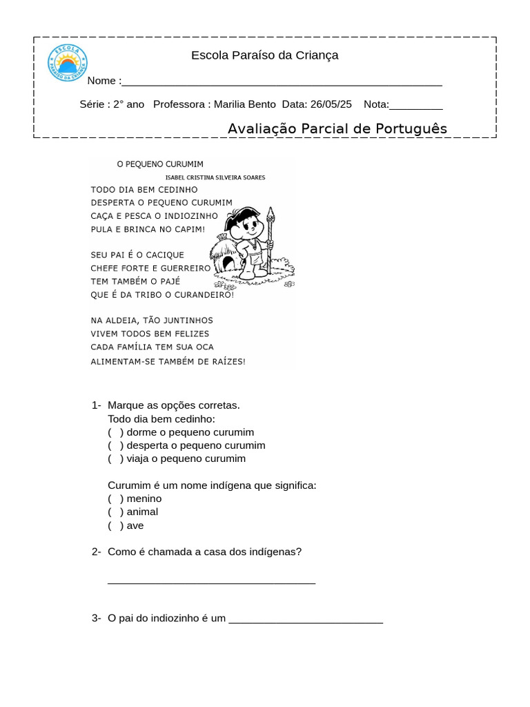 Série : 2° ano Professora : Marilia Bento Data: 30/05/25 Nota:_________
