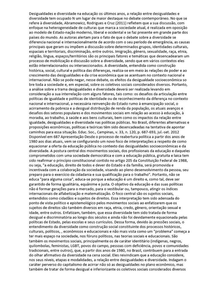 a análise sobre a trama desigualdades e diversidade deverá ser realizada levando em