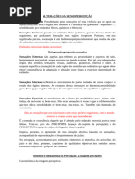 Sensação: estímulos originados dentro ou fora do organismo (passiva);
