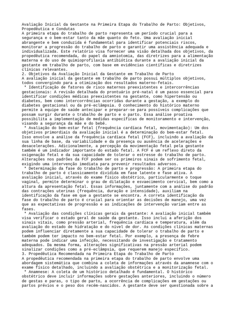 inicial, o manejo da dor, a monitorização fetal e as intervenções obstétricas. A
