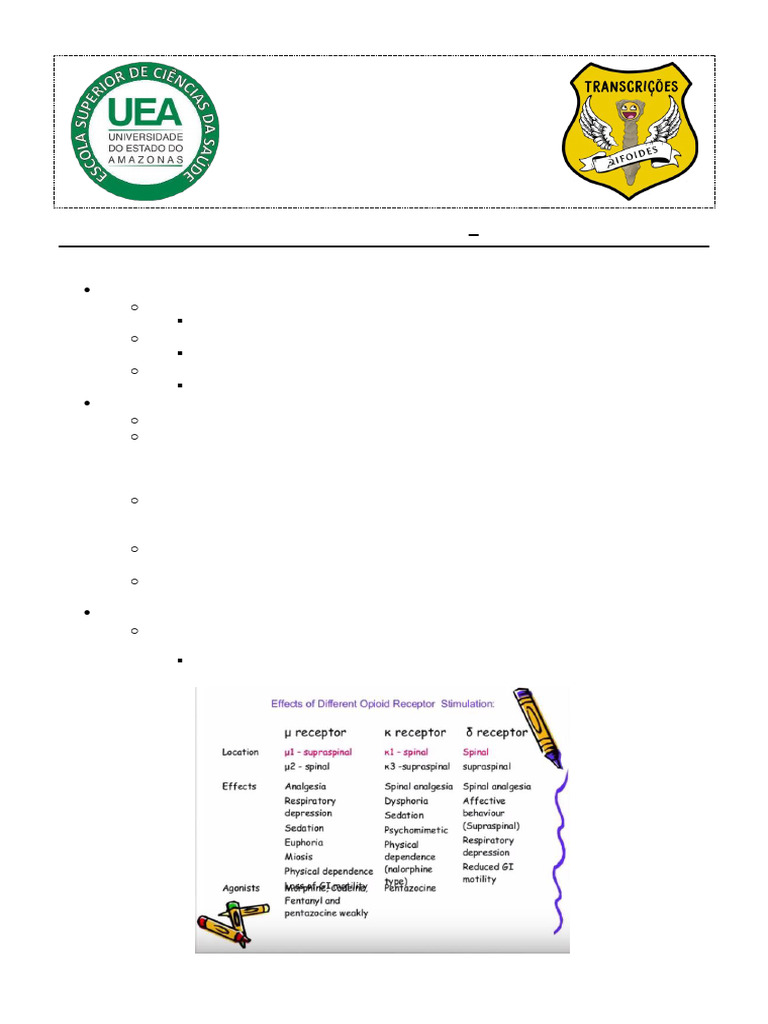 A analgesia será abordada nessa aula. A analgesia é feita pelos opioides.