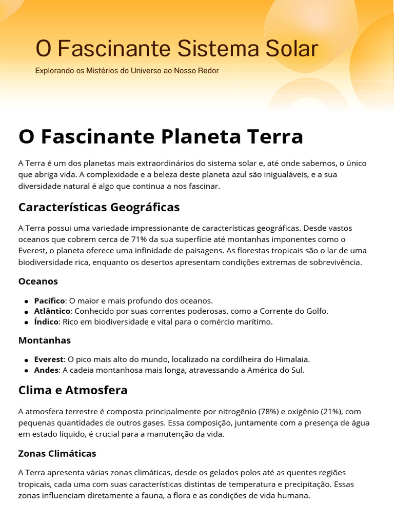 Em suma, o planeta Terra é um lugar de beleza e complexidade inigualáveis. A sua proteção e