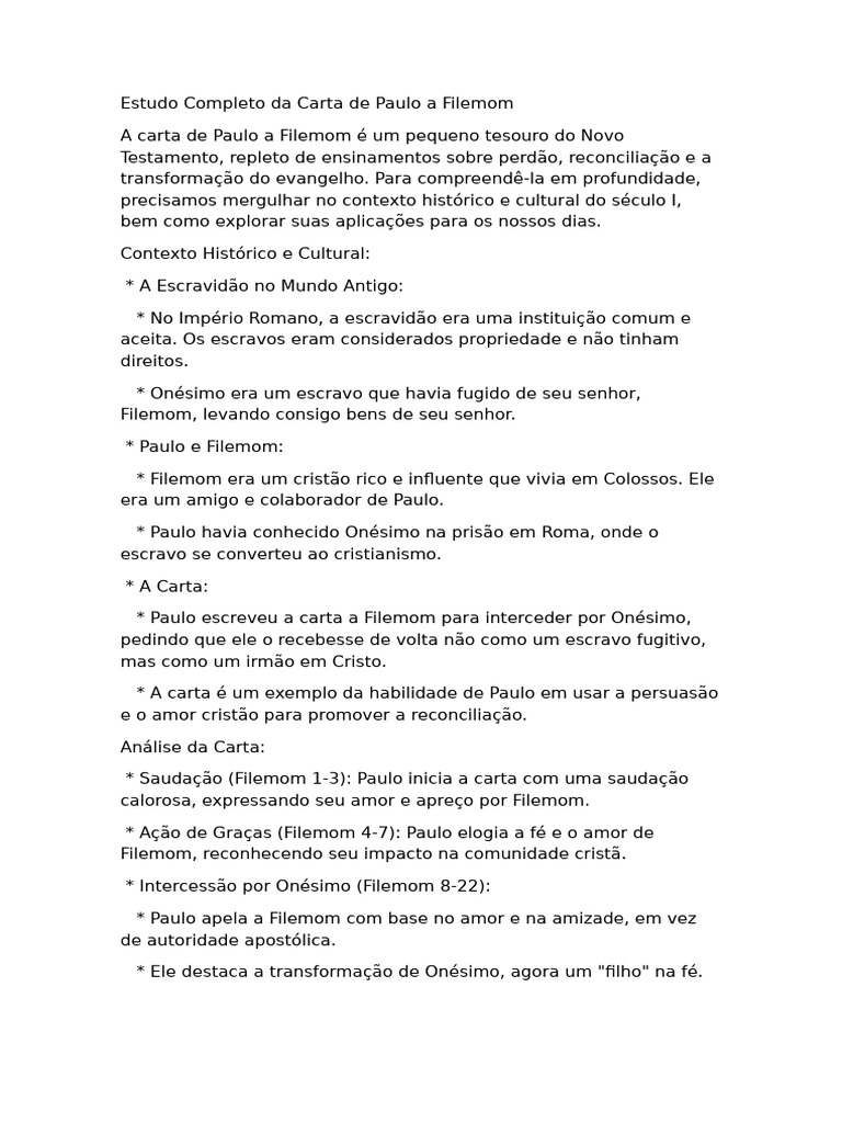 Estudo Completo da Carta de Paulo a Filemom