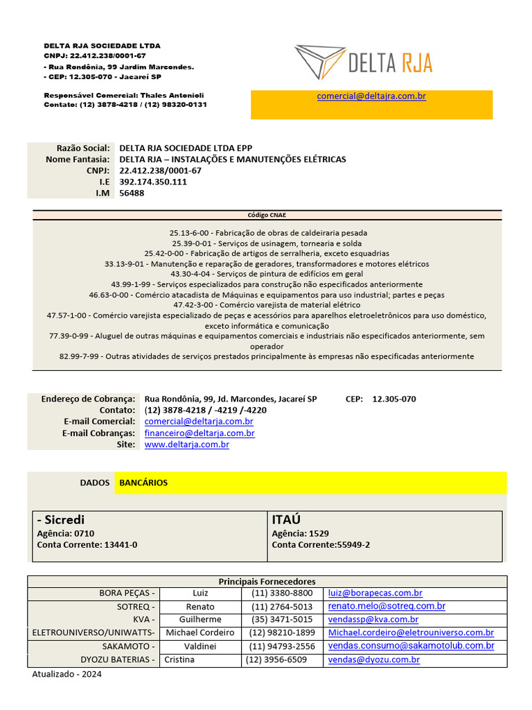 Nome Fantasia: DELTA RJA – INSTALAÇÕES E MANUTENÇÕES ELÉTRICAS