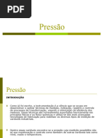 1 - INTRODUO Como j foi escrito, a instrumentao a cincia que se ocupa em desenvolver e aplicar tcnicas de medio, indicao, registro e controle de processos de transformao, visando a otimizao da eficincia dos mesmos. Essas tcnicas so normalmente suportadas teoricamente em princpios fsicos e ou fsico-qumicos e utiliza-se das mais avanadas tecnologias de fabricao para viabilizar os diversos tipos de medio de variveis industriais. Dentre essas variveis encontra-se a presso cuja medio possibilita no s sua monitorao e controle como tambm de outras variveis tais como nvel, vazo e densidade. Assim por ser sua compreenso bsica para o entendimento de outras reas da instrumentao iniciaremos revisando alguns conceitos fsicos importantes para medio de presso. 2 - DEFINIES BSICAS