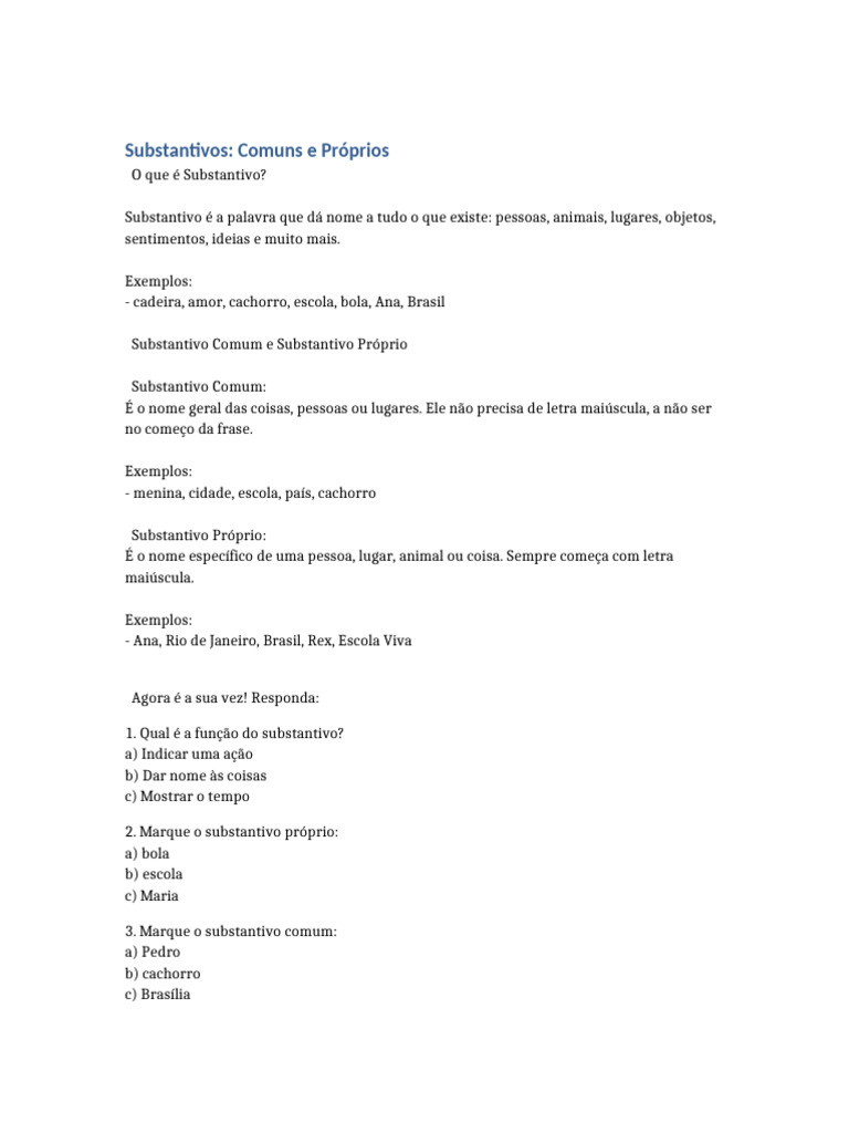 É o nome específico de uma pessoa, lugar, animal ou coisa. Sempre começa com letra