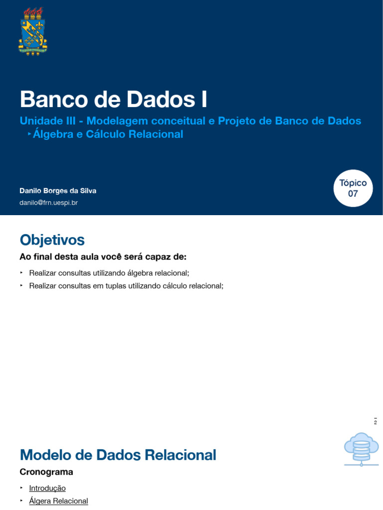 ‣ Compreendendo álgebra relacional é mais fácil apreender SQL