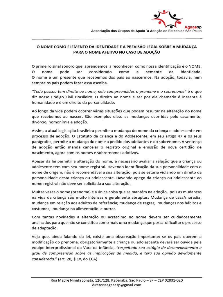 AGAAESP – Associação dos Grupos de Apoio à Adoção do Estado de São Paulo – versão Julho/2019)