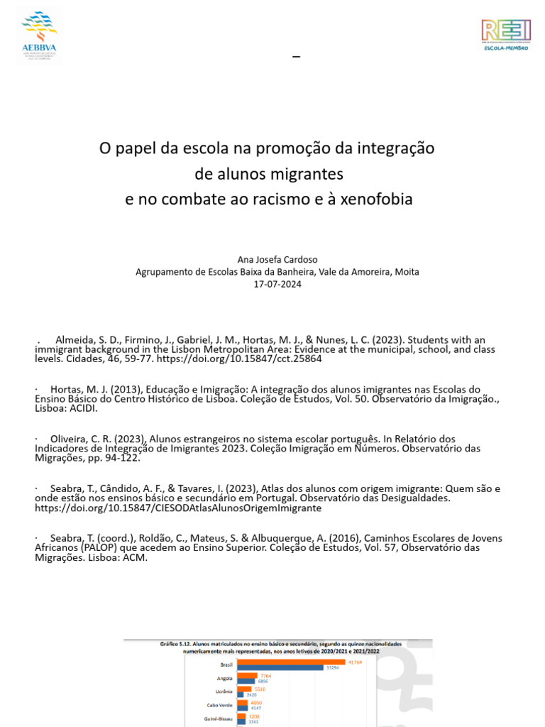 · Oliveira, C. R. (2023), Alunos estrangeiros no sistema escolar português. In Relatório dos
