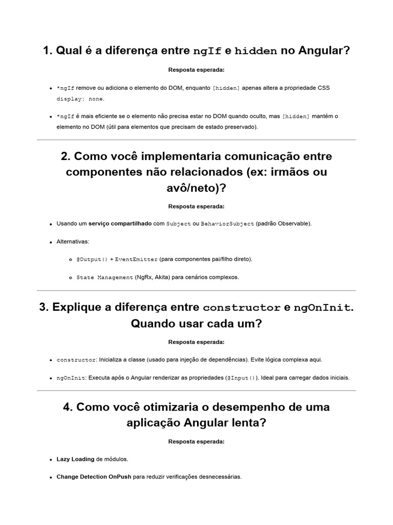 1. Qual é a diferença entre ngIf e hidden no Angular?