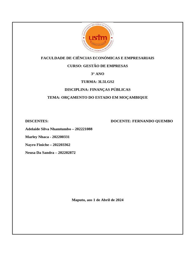 TEMA: ORÇAMENTO DO ESTADO EM MOÇAMBIQUE