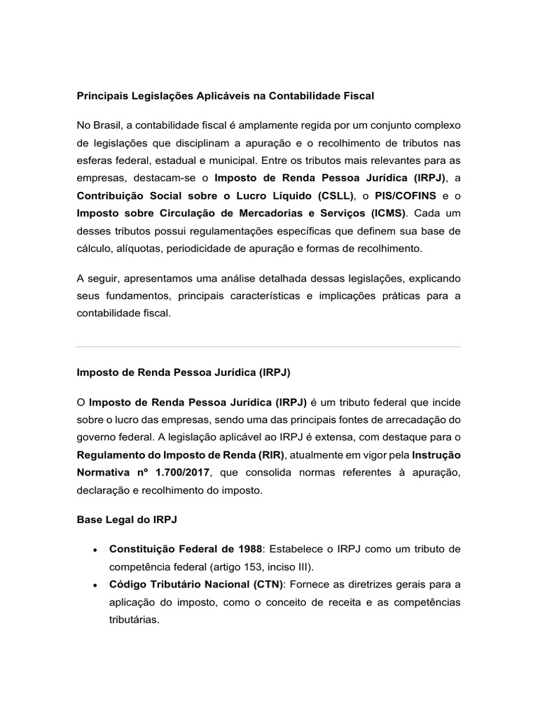 Principais Legislações Aplicáveis na Contabilidade Fiscal
