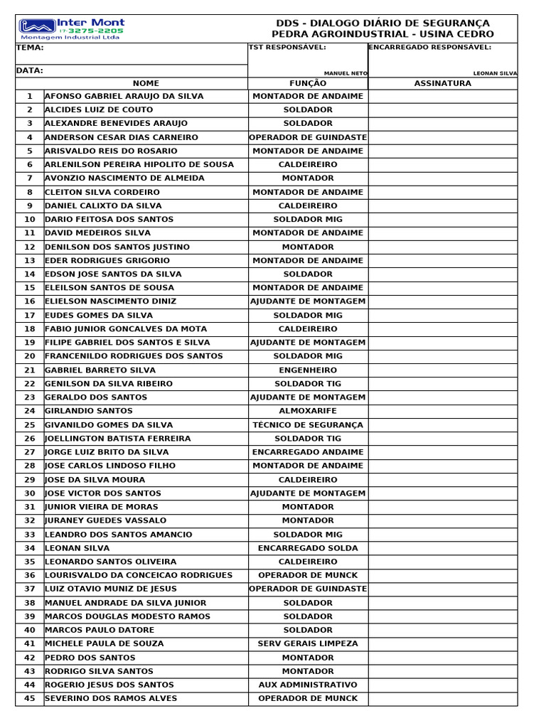 TEMA: TST RESPONSÁVEL: ENCARREGADO RESPONSÁVEL: