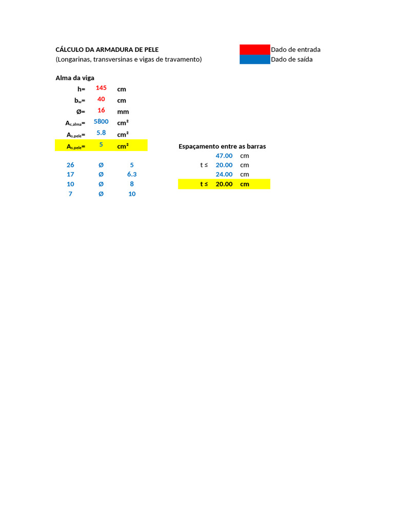 CÁLCULO DA ARMADURA DE PELE Dado de entrada