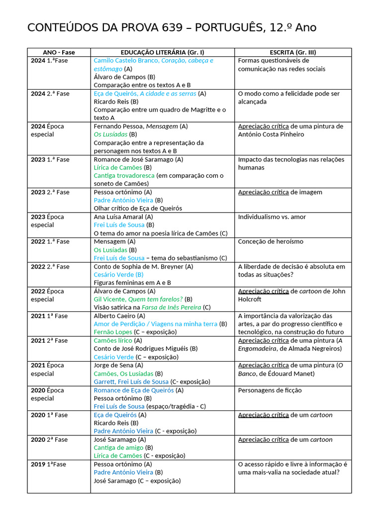 CONTEÚDOS DA PROVA 639 – PORTUGUÊS, 12.