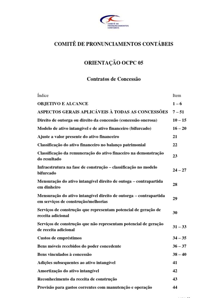 1. O Comit de Pronunciamentos Contbeis edita a presente Orientao com a finalidade de esclarecer assuntos que tm gerado dvidas quanto adoo da Interpretao Tcnica ICPC 01 - Contratos de Concesso pelas empresas reguladas brasileiras. 2. importante alertar administradores e contadores de empresas reguladas que atuam no papel de concessionrio ou operador sobre os desafios que enfrentaro para a concluso sobre se cada contrato de concesso ou similar atende ou no a todas as condies estabelecidas e verificar se a entidade est dentro do alcance da ICPC 01. Essa tarefa deve ser precedida das seguintes consideraes: (a) conhecimento dos novos conceitos sobre reconhecimento de receita e classificao dos ativos de infraestrutura vinculados concesso introduzidos pela ICPC 01; (b) conhecimento do arcabouo regulatrio (marco regulatrio) de cada indstria e dos respectivos setores de cada indstria. Algumas indstrias passaram por alteraes desses marcos desde o processo de privatizao iniciado em 1995 no Brasil; (c) anlise individual de cada modalidade de contrato de prestao de servios pblicos por entidade de direito privado, tais como contratos de concesso, autorizao, uso do bem pblico, permisso e outros de naturezas similares; (d) conhecimento de todos os direitos e obrigaes estabelecidos nesses contratos; (e) conhecimento da formao de preos (mecanismo de tarifa) e processo de reviso desses preos ao longo do prazo de concesso; (f) conhecimento de que o fluxo de caixa do negcio pode no ser alterado, mas o fluxo de caixa dos dividendos pode vir a ser impactado pelas mudanas trazidas pela ICPC 01 em decorrncia de alteraes no lucro lquido. 3. Todas essas consideraes objetivam analisar e tratar da melhor forma possvel o reconhecimento da receita em confronto com os custos e as despesas de cada negcio ao longo do prazo da concesso.