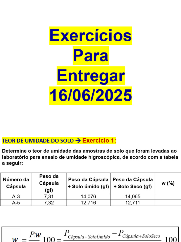 a umidade é igual a 10%, determine o peso específico dos sólidos (s).