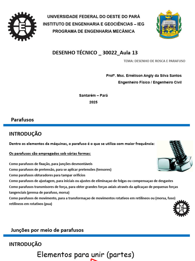 TEMA: DESENHO DE ROSCA E PARAFUSO