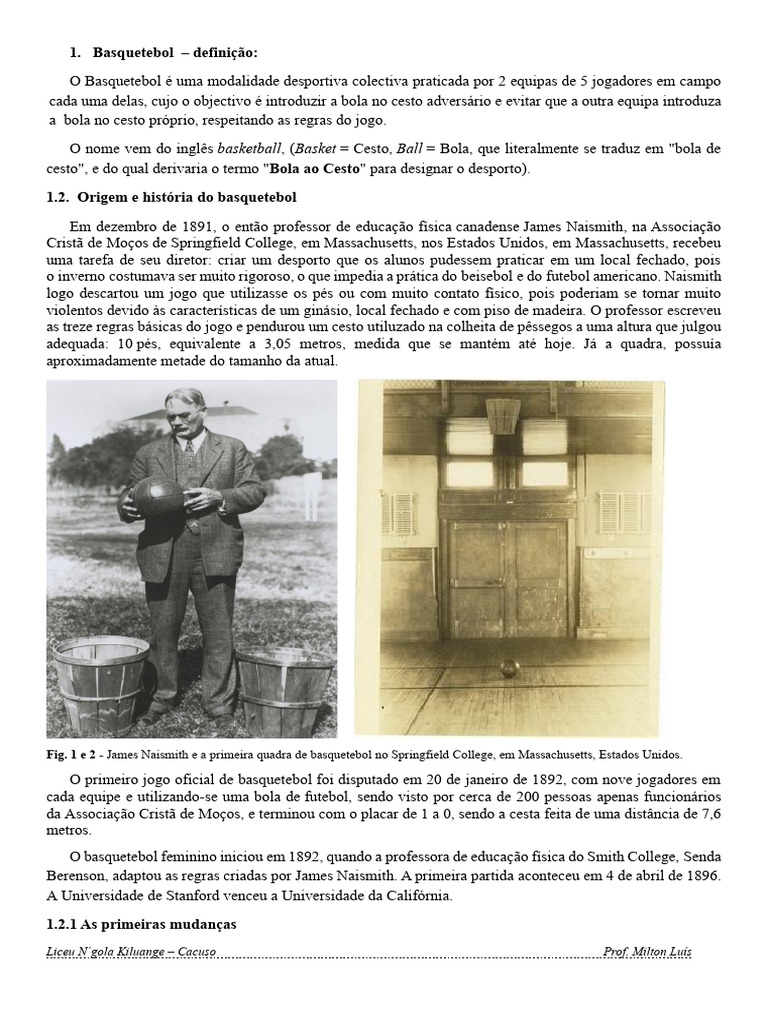 Fig. 1 e 2 - James Naismith e a primeira quadra de basquetebol no Springfield College, em Massachusetts, Estados Unidos.