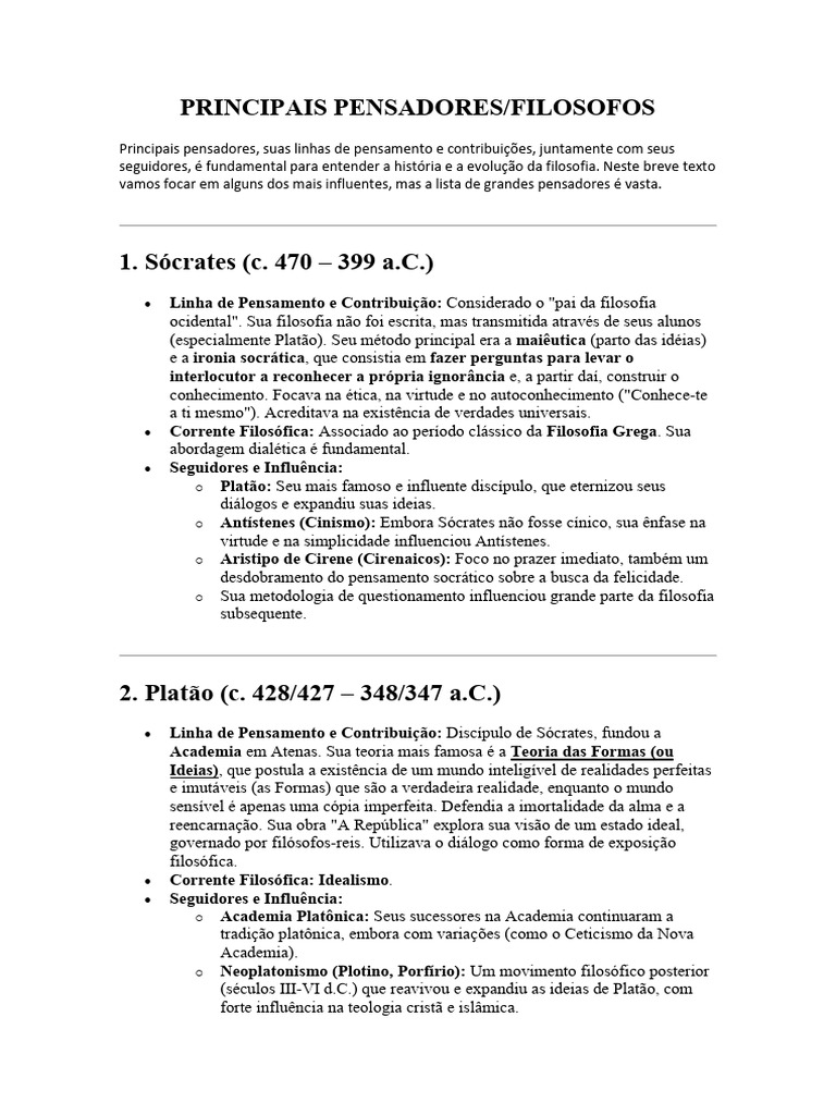 seguidores, é fundamental para entender a história e a evolução da filosofia. Neste breve texto