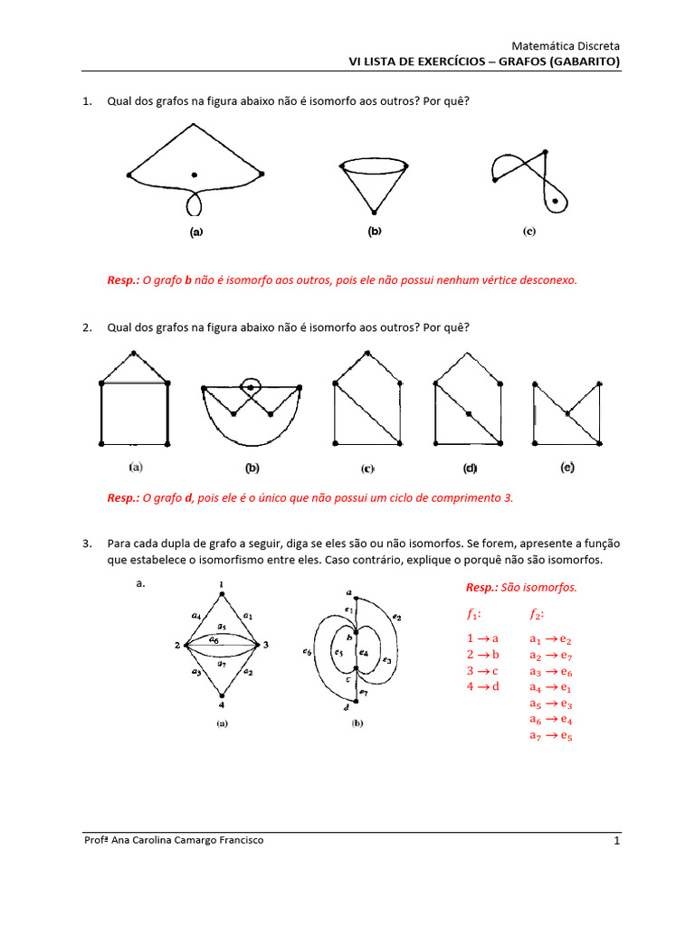 1. Qual dos grafos na figura abaixo não é isomorfo aos outros? Por quê?