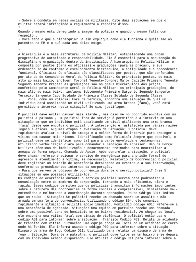 - Para que servem os códigos de ocorrência durante o serviço policial? Crie 5