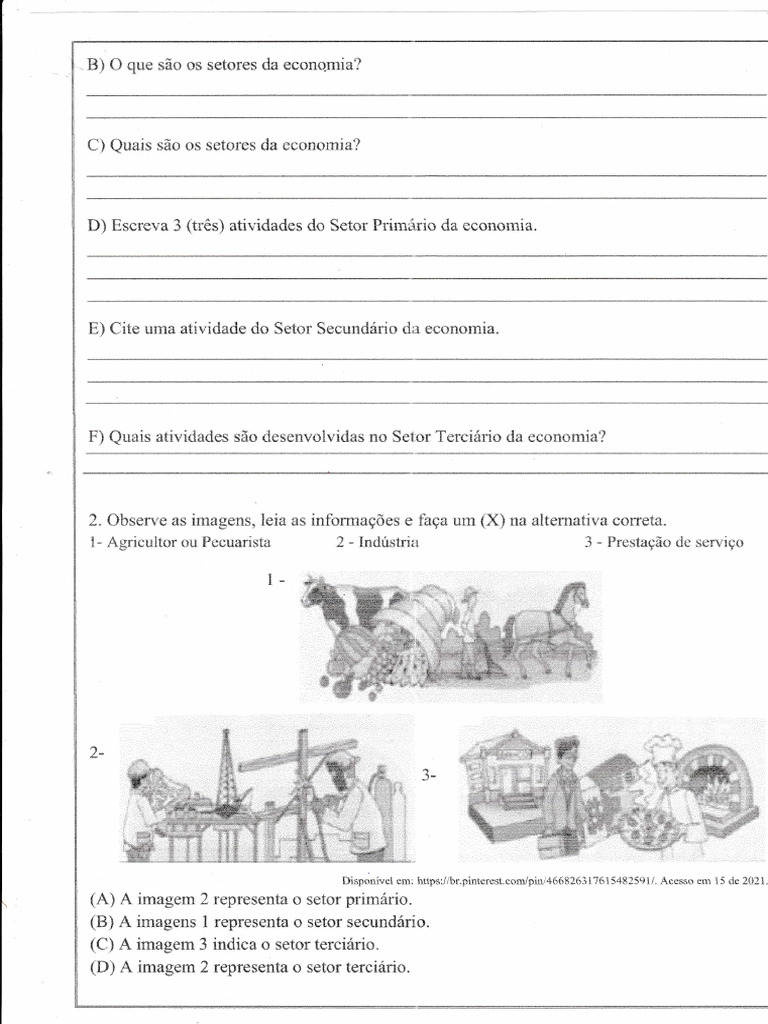 D) Escreva 3 {três) atividades do §etor Primário da economia.